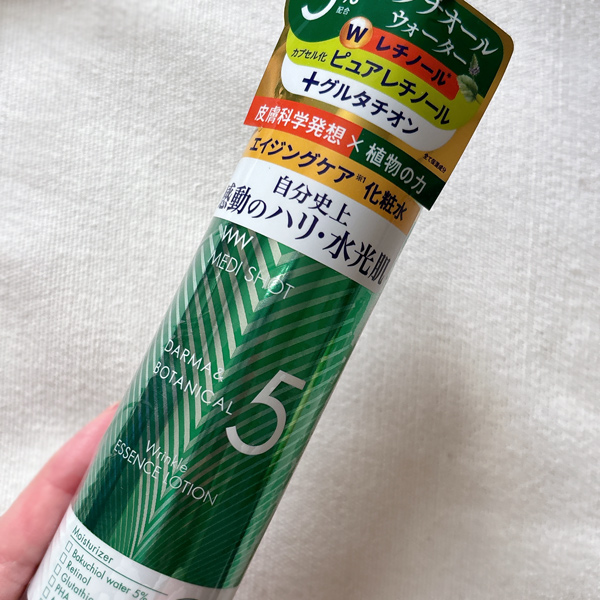 メディショット ダーマ&ボタニカル リンクル美容液ローションは、「なめらかな使用感でやさしくうるおし、つるんとハリ肌へ導く化粧水」です。